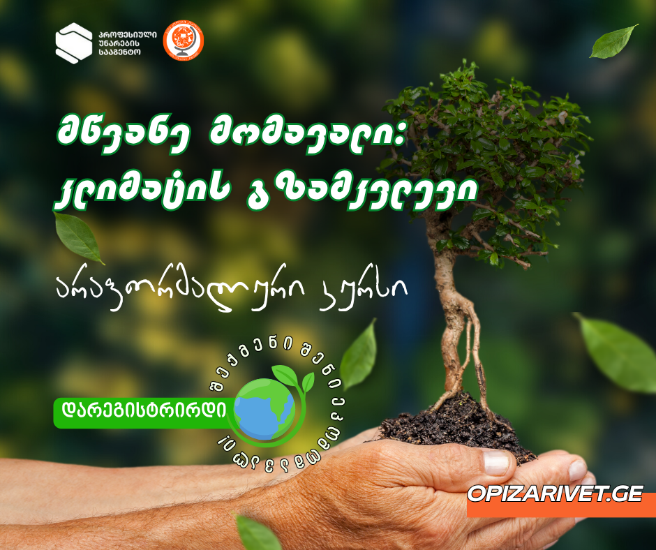 სსიპ კოლეჯი „ოპიზარი“ აცხადებს მიღებას არაფორმალურ საგანმანათლებლო კურსზე „მწვანე მომავალი: კლიმატის გზამკვლევი“. კურსის ფარგლებში მონაწილეები: გააცნობიერებენ კლიმატის ცვლილების ძირითად გამოწვევებს (გლობალურ და ადგილობრივ); ისწავლიან ეკო-მეგობრულ ჩვევებს — ენერგოეფექტურობას, ნარჩენების მართვას, წყლის დაზოგვას; გაეცნობიან ბიომრავალფეროვნებისა და ეკოსისტემების მნიშვნელობას; განივითარებენ მოქალაქეობრივ აქტიურობას და […]