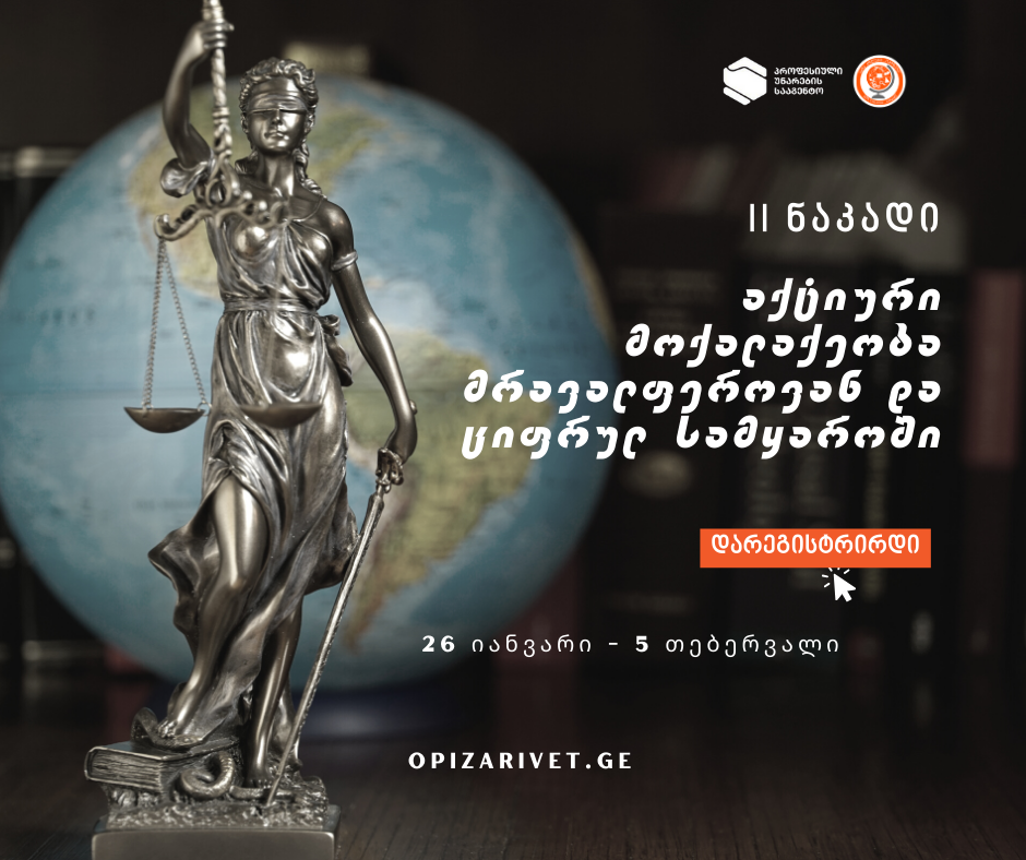 სსიპ კოლეჯი „ოპიზარი“ აცხადებს მიღებას არაფორმალური საგანმანათლებლო კურსის — „აქტიური მოქალაქეობა მრავალფეროვან და ციფრულ სამყაროში“ — მეორე ნაკადზე. კურსის ფარგლებში მონაწილეები: გააცნობიერებენ მრავალფეროვანი საზოგადოების მნიშვნელობას და თანაცხოვრების პრინციპებს; ისწავლიან უფლებებისა და მოვალეობების ამოცნობას ყოველდღიურ ცხოვრებაში; განივითარებენ პასუხისმგებლობას როგორც ინდივიდუალურ, ისე […]