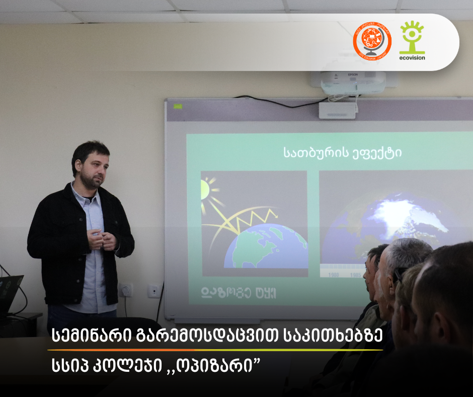 27 ოქტომბერს სსიპ კოლეჯ „ოპიზარში“ ორგანიზაცია „ეკოხედვის“ ორგანიზებით გაიმართა საგანმანათლებლო სემინარი თემაზე: „გარემოსდაცვითი გამოწვევები საქართველოში“. სემინარში მონაწილეობდნენ კოლეჯის სტუდენტები და პროფესიული განათლების მასწავლებლები. შეხვედრის მიზანს წარმოადგენდა მონაწილეთა ცოდნის გაღრმავება გარემოსდაცვით თემებზე და მათი ჩართულობის ხელშეწყობა გარემოსდაცვითი პრობლემების გადაჭრის პროცესში. სემინარის […]
